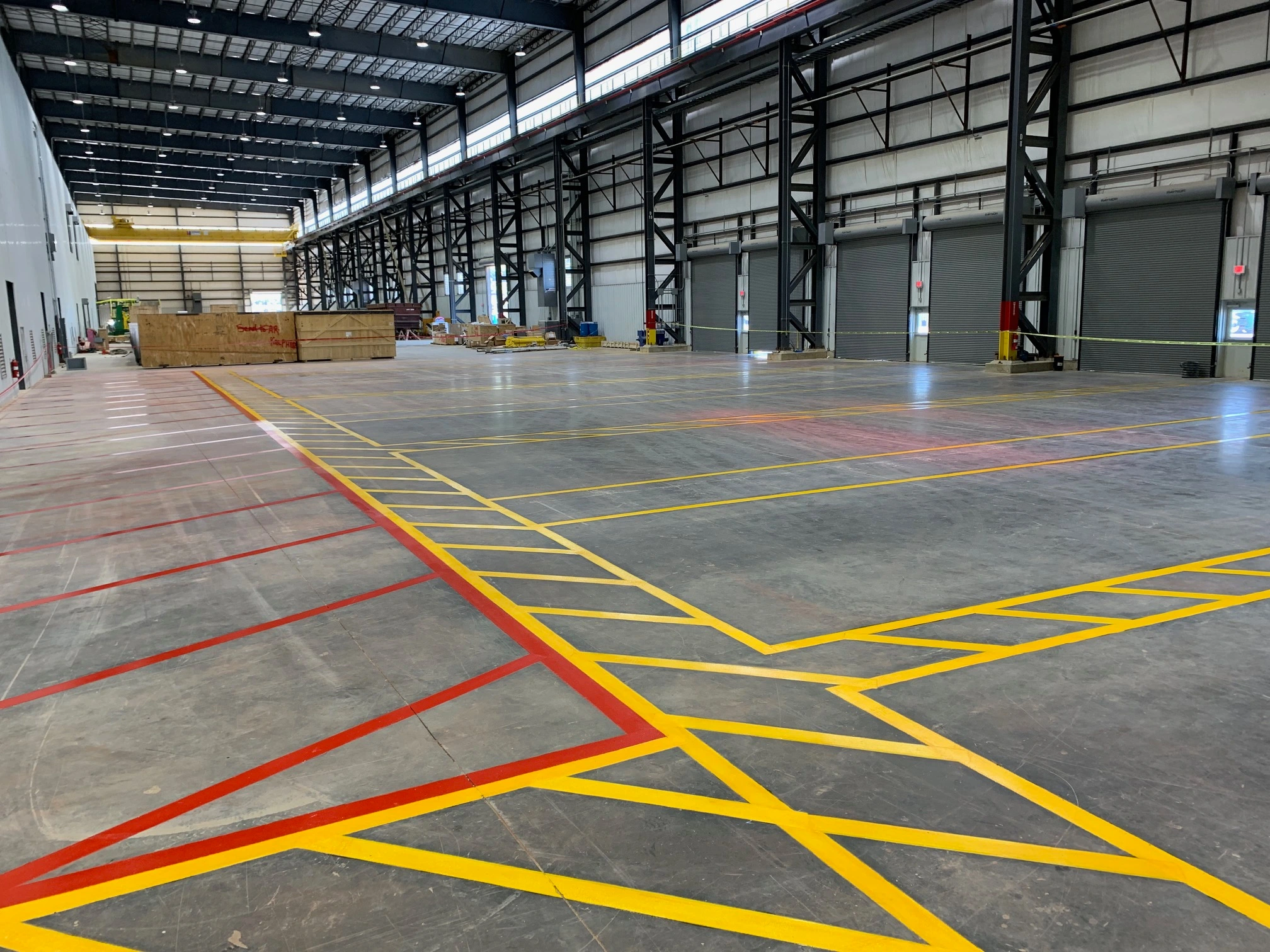 Since 1994, our crews have provided the safe installation of quality floor marking systems to help our customer’s facilities operate safely and efficiently. Our crews have installed floor markings for facilities in several states. Our crews travel nationwide for large floor marking projects. Most of our projects are new construction jobs, so we are responsible for the new layout and installation of the coatings in facilities ranging from 300,000 to 5,000,000 square feet.