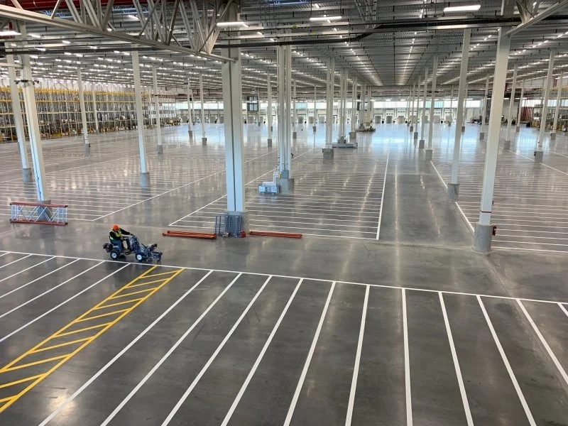 In addition to applying warehouse floor markings, we also specialize in concrete surface preparation to ensure optimal adhesion for floor striping. Warehouse floors are typically smooth to facilitate cleaning, which can make it challenging for coatings to bond effectively.